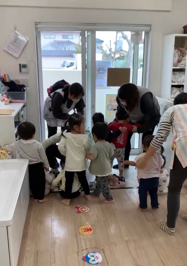 靴を履くのに時間がかかってしまった子はいましたが、泣いてしまう子は無く、保育者に誘導されて、無事避難する事が出来ました。