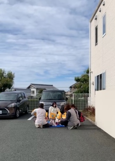 今年度初めて駐車場まで避難しましたが、焦る事なく保育者と手を繋いで落ち着いて避難することができました。
