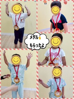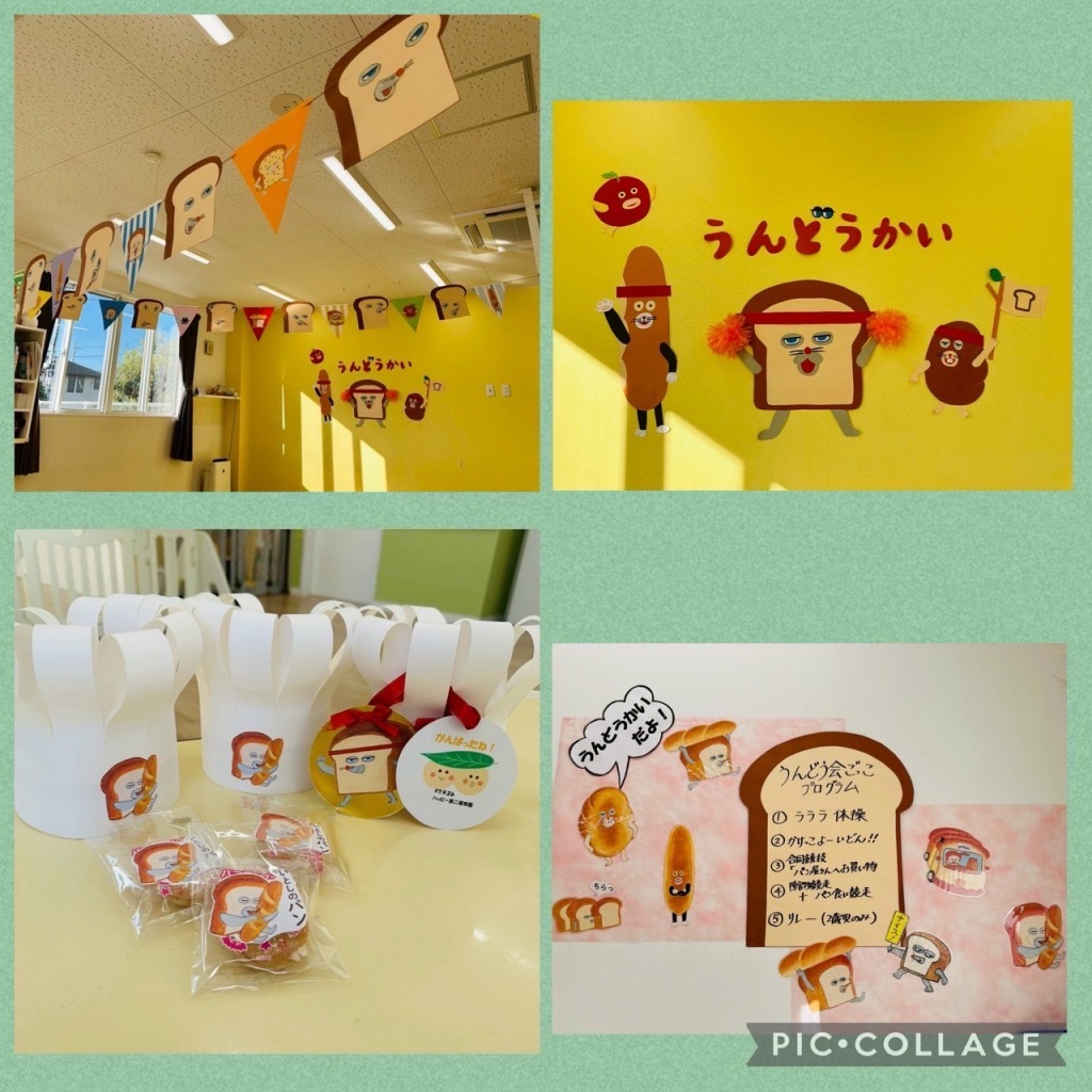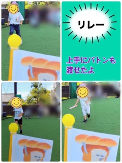 2025.9.29 【第二保育園】運動会ごっこ🚩 運動会ごっこを行いました🚩 テーマは、みんなが大好きな絵本「パンどろぼう」🍞 体操は「ラララ体操」 鈴が付いたシュシュを付けて、元気良く踊りました🎵 パンどろぼうに変身して、パン屋さんにお買い物。 1.2歳さんペアになり、大きなパンを運びました🍞 パンのトンネルをくぐり、パンをゲット‼️ かけっこも元気いっぱいでした🏃 2歳児さんはリレーにも挑戦!バトンも上手に渡せました。 頑張ったご褒美にメダル🥇をもらい大喜び😊 頑張る姿、とても素敵でした👍