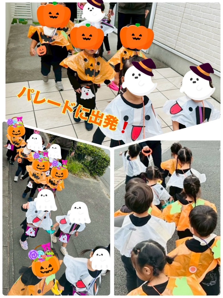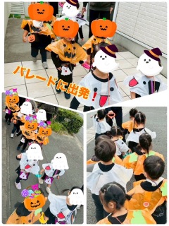 カボチャとオバケに変身して、パレードに出発。