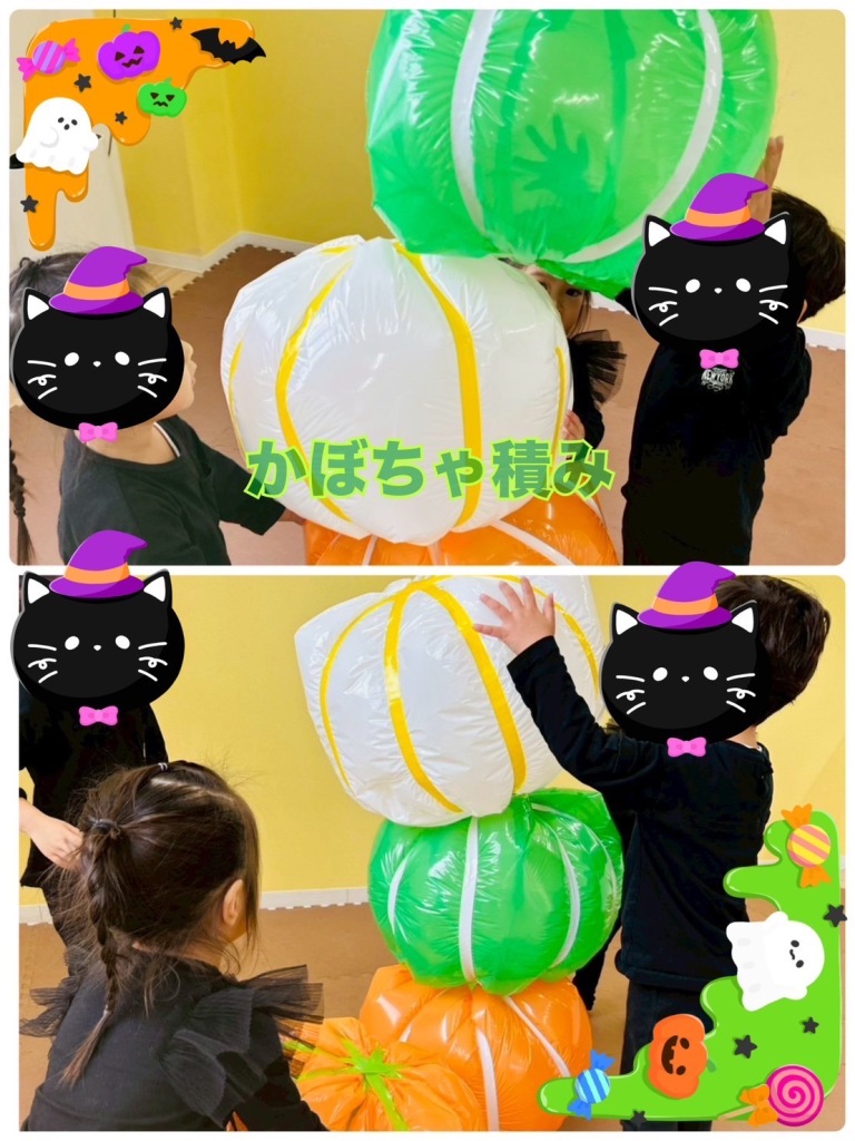 ハロウィンのカード探しや、ハロウィン大玉ボール積みのゲームを楽しみました。