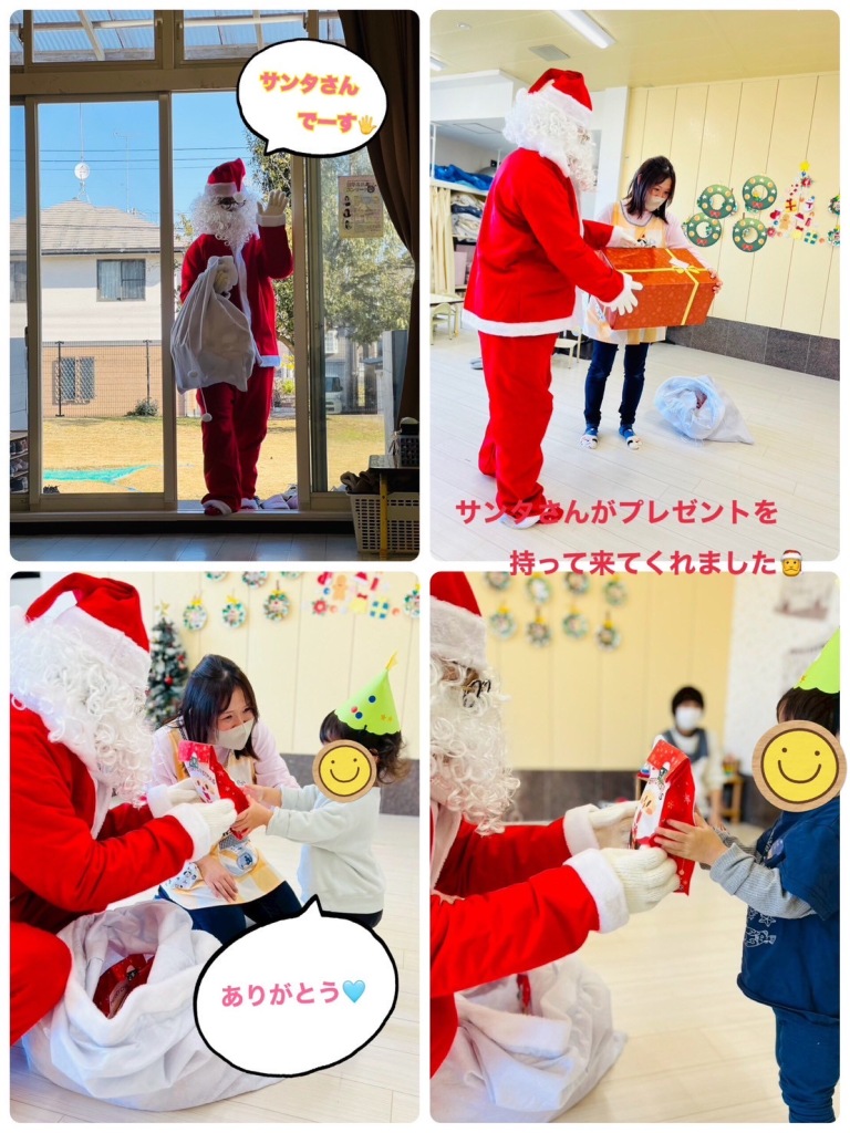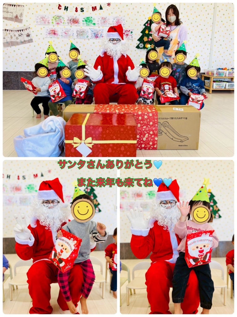 2025.12.24 【ハッピー保育園】クリスマス会🎅 クリスマス会を行いました🌲 クリスマスのおはなしを見たり、クリスマスオーナメントをさがしてかざるゲームを楽しみました😁🫶 鈴の音がして玄関を見てみると、サンタさんが🎅🌲 大きなプレゼントをたくさん持ってきてくれたサンタさん🫰 プレゼントをもらって、記念撮影してもらいました🫶 子どもたちのキラキラの笑顔がたくさん見られたクリスマス会になりました🍰