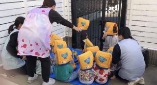 2025.12.24 【第三保育園】避難訓練 午前おやつ前に地震が起きた想定で避難訓練を行いました。 1歳児さんは、訓練前に机の下に入る練習を何度かしていたので、素早く入る子がほとんどでしたが、まだ戸惑って動けなくなってしまう子もいました。 2歳児さんは保育者の声掛けですぐにその場でダンゴムシのポーズをとって集まることが出来ました。 外へ避難してからは、しっかり防災頭巾をかぶって落ち着いて座っていることが出来ました。