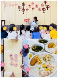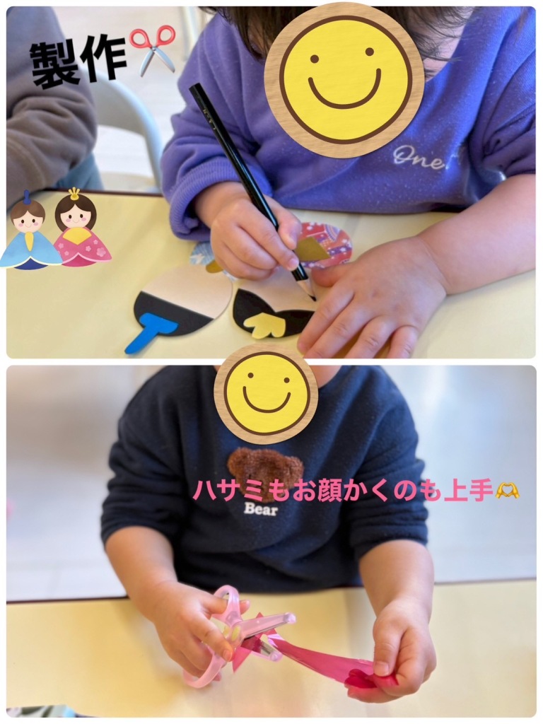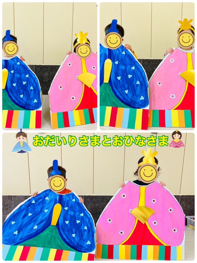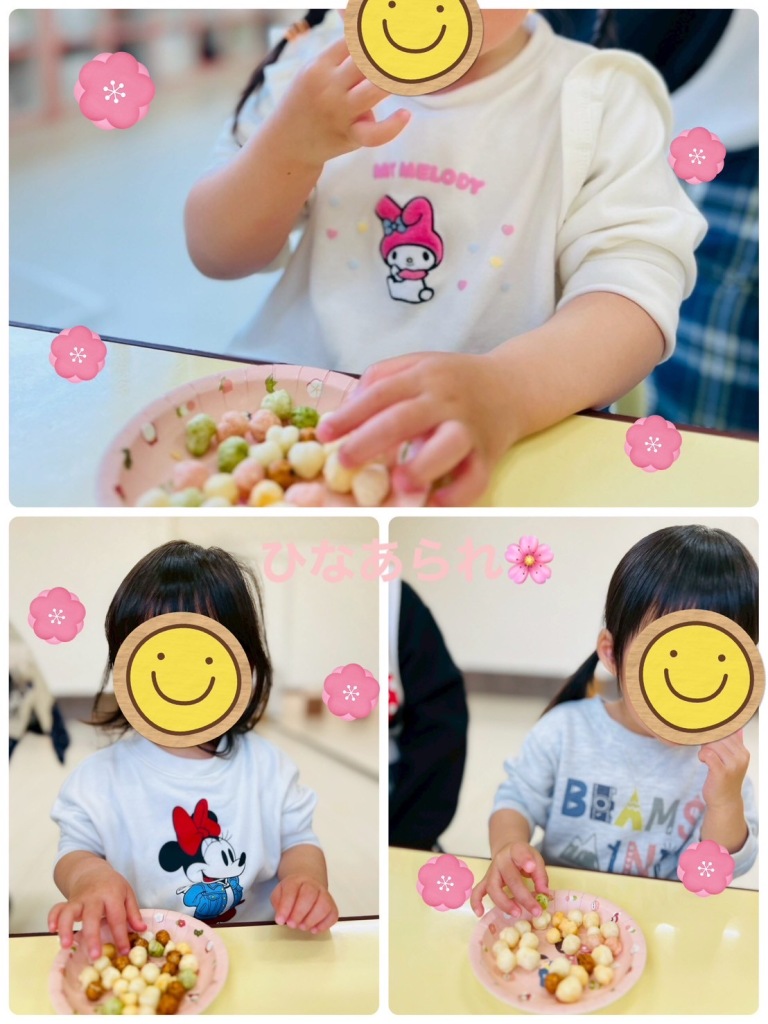 2026.3.3 【ハッピー保育園】ひなまつり会🎎 ひなまつり会を行いました🌸 お部屋には子どもたちがハサミできったりはったり、お顔を描いたりした、素敵なおひなさまが飾りました✨ ひなまつりの絵本を読んだり、ひなあられを食べたりしました😁 ひなあられの色はなんの色なのかを伝えると、「これはお花のピンク🩷これは葉っぱのみどり💚」とお話しながら楽しく食べていました✨ みんなでおだいりさまとおひなさまに変身してハイチーズ📷🎎 とてもかわいいおだいりさま、ひなさまです🥰 子どもたちがこれからも健やかに成長していきますように🌼