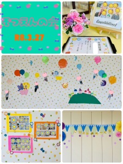 お花の中には子どもたちの入園当初の顔と今の顔がはいっています🌸