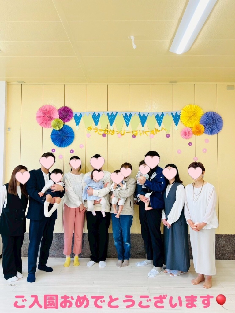 2026.4.1 【 ハッピー保育園】入園・進級式🌈 本日、入園、進級式を行いました🌸 今年度は4人のお友だちがハッピー保育園に仲間入りしてくれました🎈 お名前を紹介するとかわいいお返事をしてくれました🙌 進級して、お兄さんお姉さんになったお友だちは、お歌を入園したお友だちにプレゼントとして見せてくれました🫶 今年度は12名でスタートします🩵
