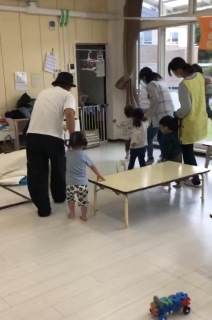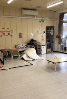 2026.4.24 【ハッピー保育園】避難訓練 今年度はじめての避難訓練を行いました! 室内での自由遊び中に地震が発生したことを想定し、行いました。 新入園児もいる中でまだ落ち着かないため、机の下へ入るのはやめ、頭を布団で守るようにしました。 雨が少し降っていたため室内での避難のみにしました。 びっくりして泣いてしまう子もいたり、防災頭巾を嫌がったりと落ち着かない場面もありました。 今後も丁寧に対応しながら職員もしっかり連携をとっていきたいと思います。